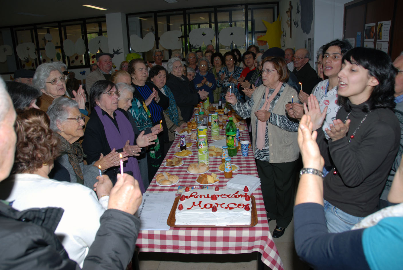 Na última quarta-feira de cada mês festejam-se os Aniversários dos utentes que fizeram anos nesse mês. São anunciados os seus nomes e no final, ao som do acordeão, cantamos os parabéns e partimos o bolo! Este é um lanche partilhado, o que acontece em todos os bailes, mas que tem um significado especial nestes dias de Aniversário.